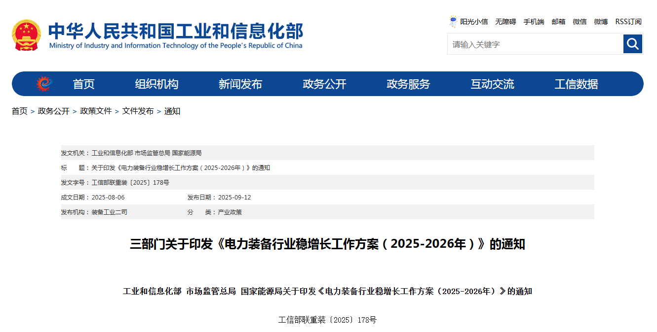 推动绿色智能转型,三部门发布《电力装备行业稳定增长工作方案(2025-2026年)》